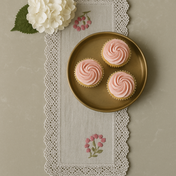 Use it as a small layering cloth under a coffee tray or a dessert plate. The scalloped edges peeking out add just the right touch of texture.