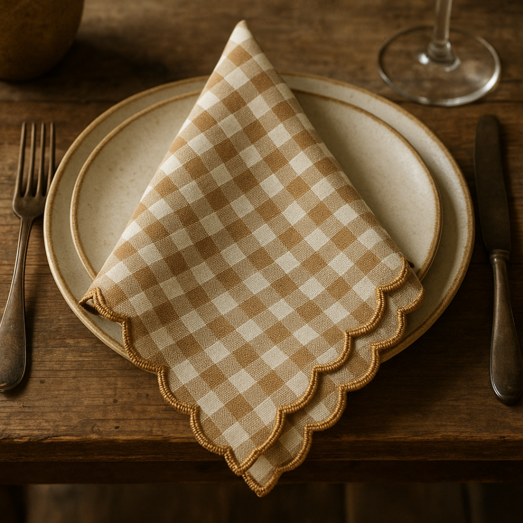 The Gingerbread Gingham Scalloped Napkin is more than just a table accessory. It’s a return to thoughtful hosting. A reminder that beauty lies in the details. And that every meal—whether solo or shared—deserves to be celebrated.